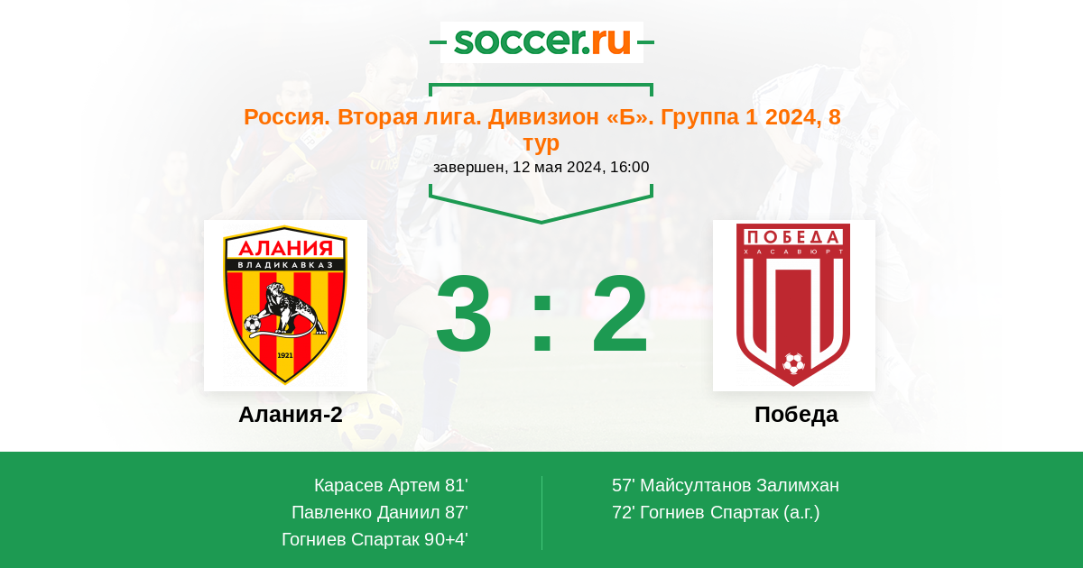 | Алания-2 | 6:6 | 3:2 | 3:4 |