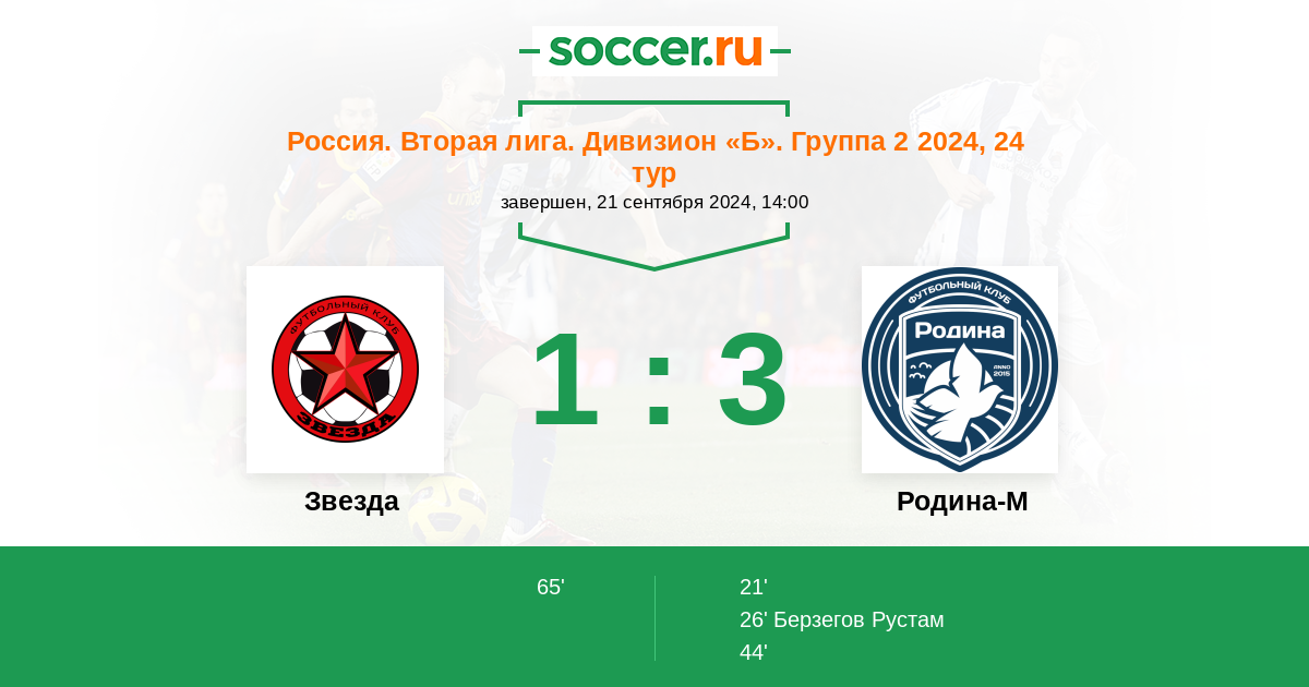 | Россия. Вторая лига. Группа 2 | 2 | 1 | 0 | 1 |