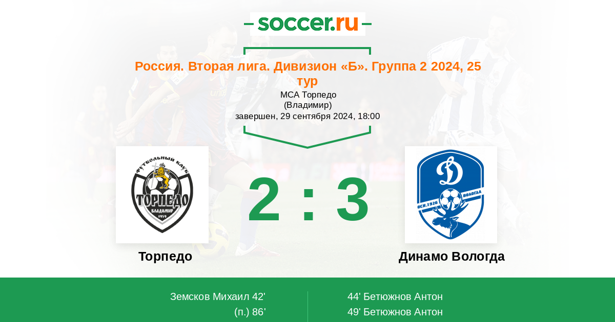 | Торпедо | Динамо Вологда | |