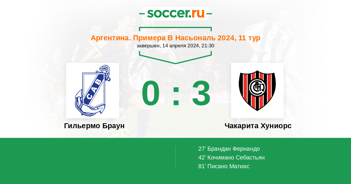 | Гильермо Браун | Чакарита Хуниорс | |
