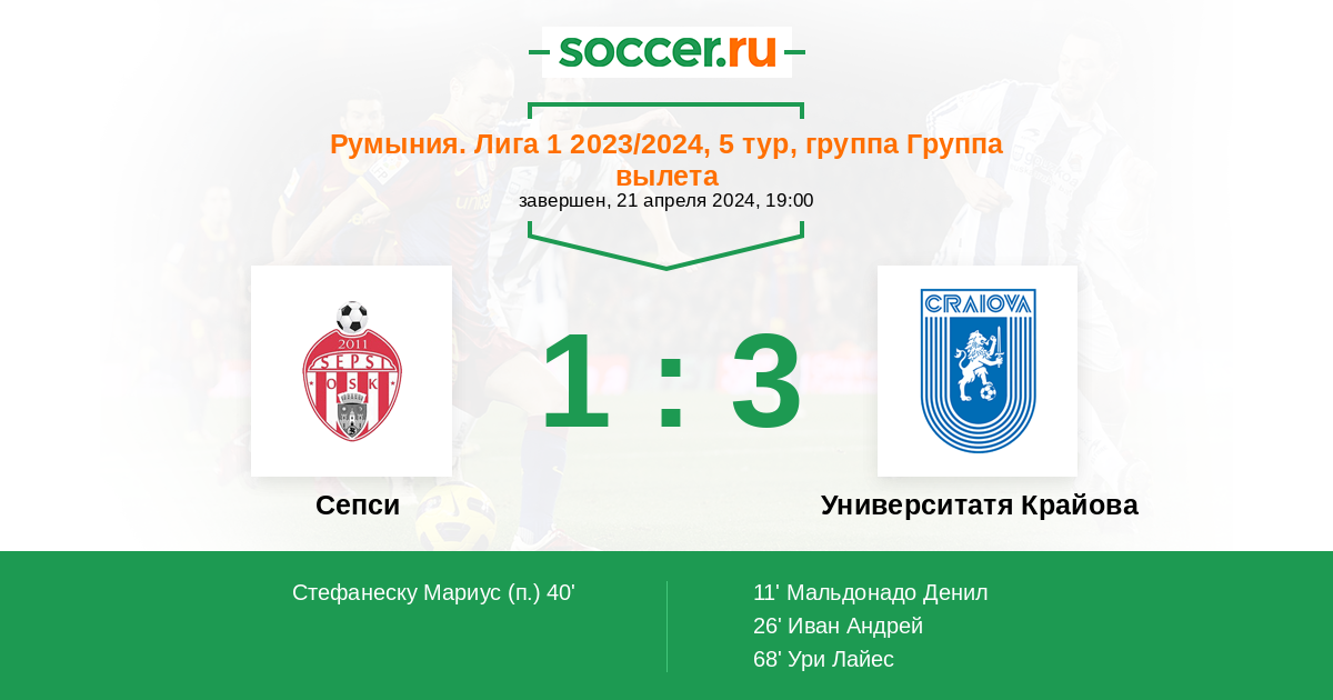 Университатя Крайова 3:2 Сепси