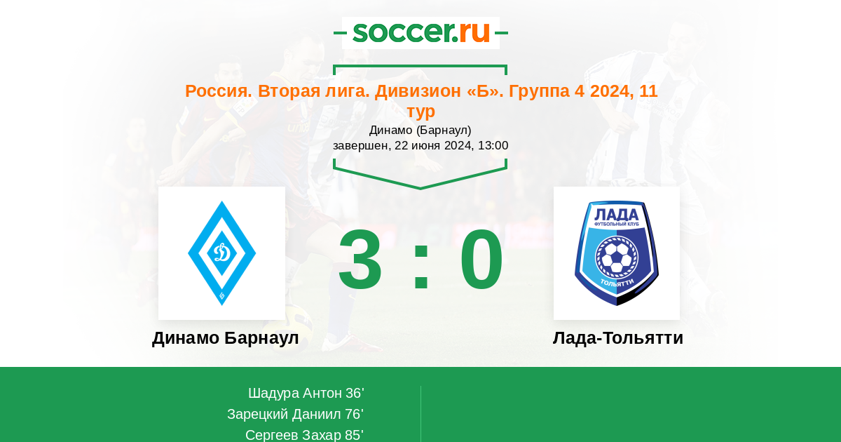 | Россия. Вторая лига. Группа 4 | 4 | 2 | 1 | 1 |