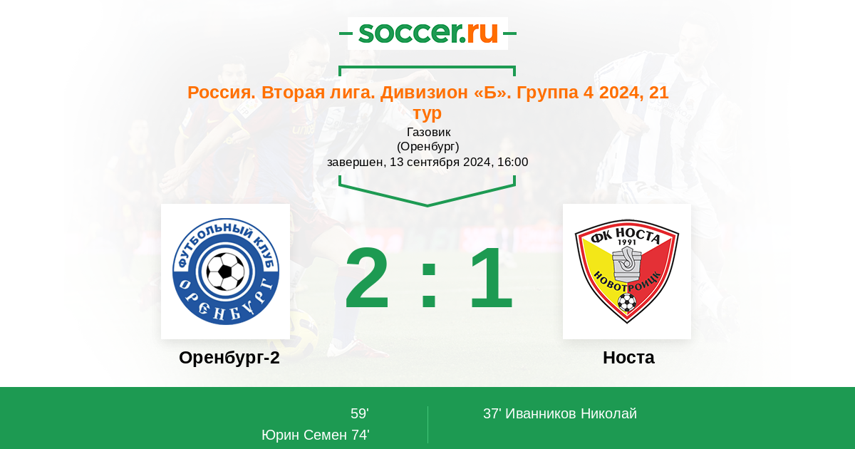 | Оренбург-2 | 15:22 | 9:7 | 6:15 |