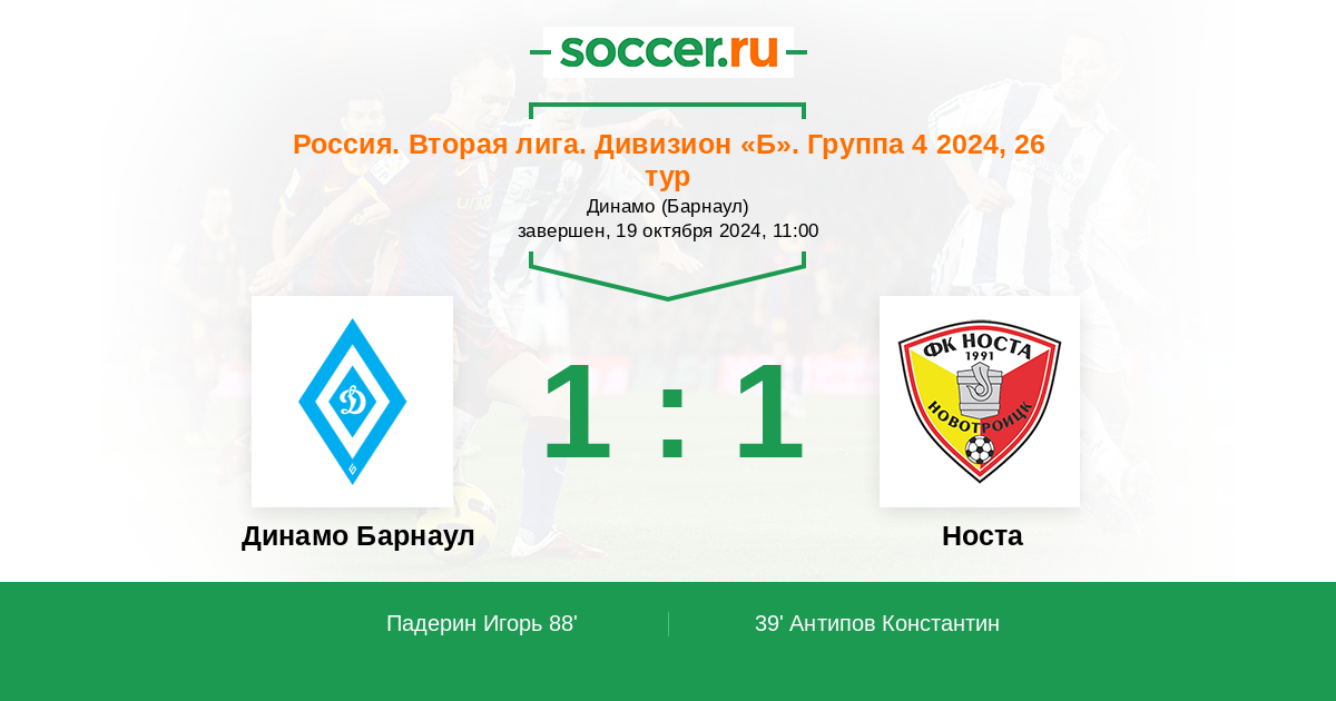 | Динамо Барнаул | 24:22 | 14:9 | 10:13 |