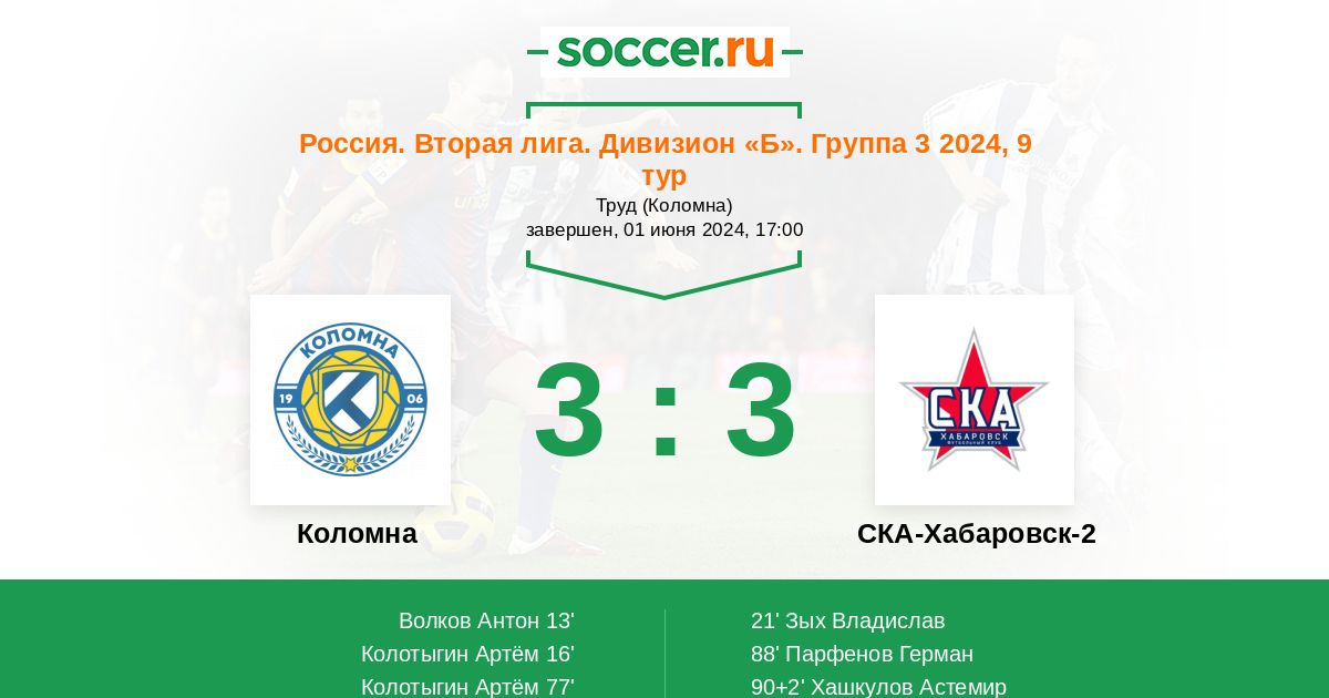| Коломна | СКА-Хабаровск-2 | |