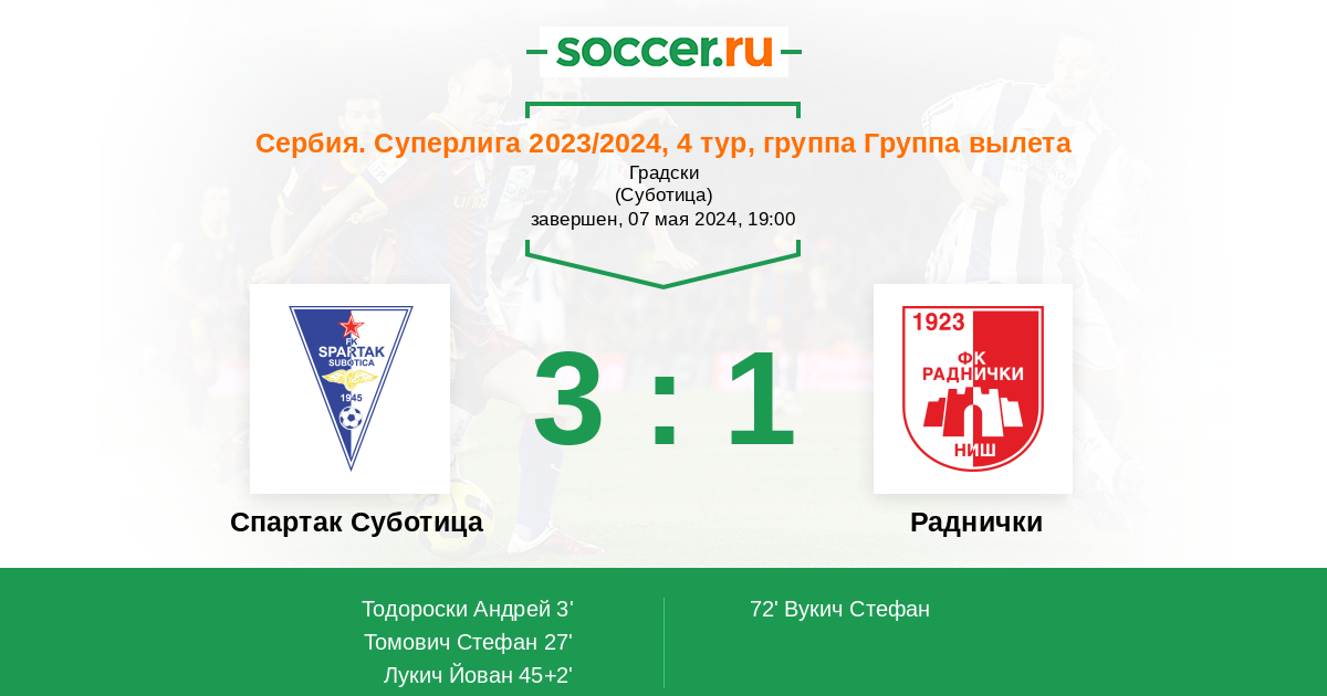 | Спартак Суботица | 36:34 | 26:16 | 10:18 |