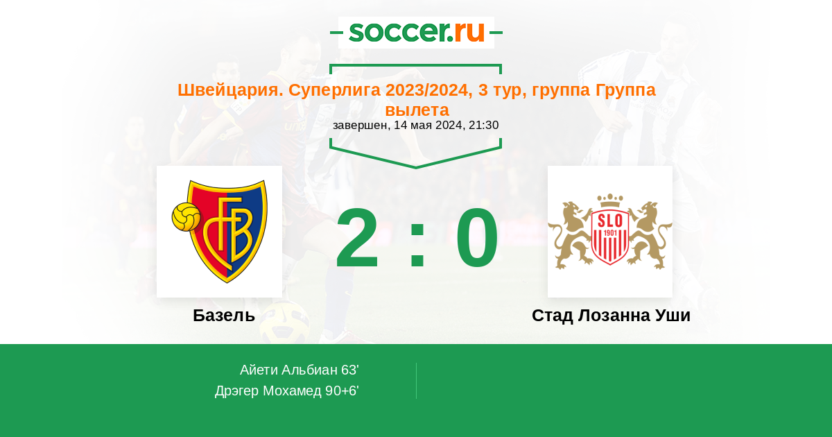 | Стад Лозанна Уши | 4:3 | 1:3 | 3:0 |