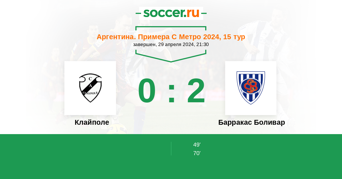 | Барракас Боливар | 0:5 | 0:5 | 0:0 |
