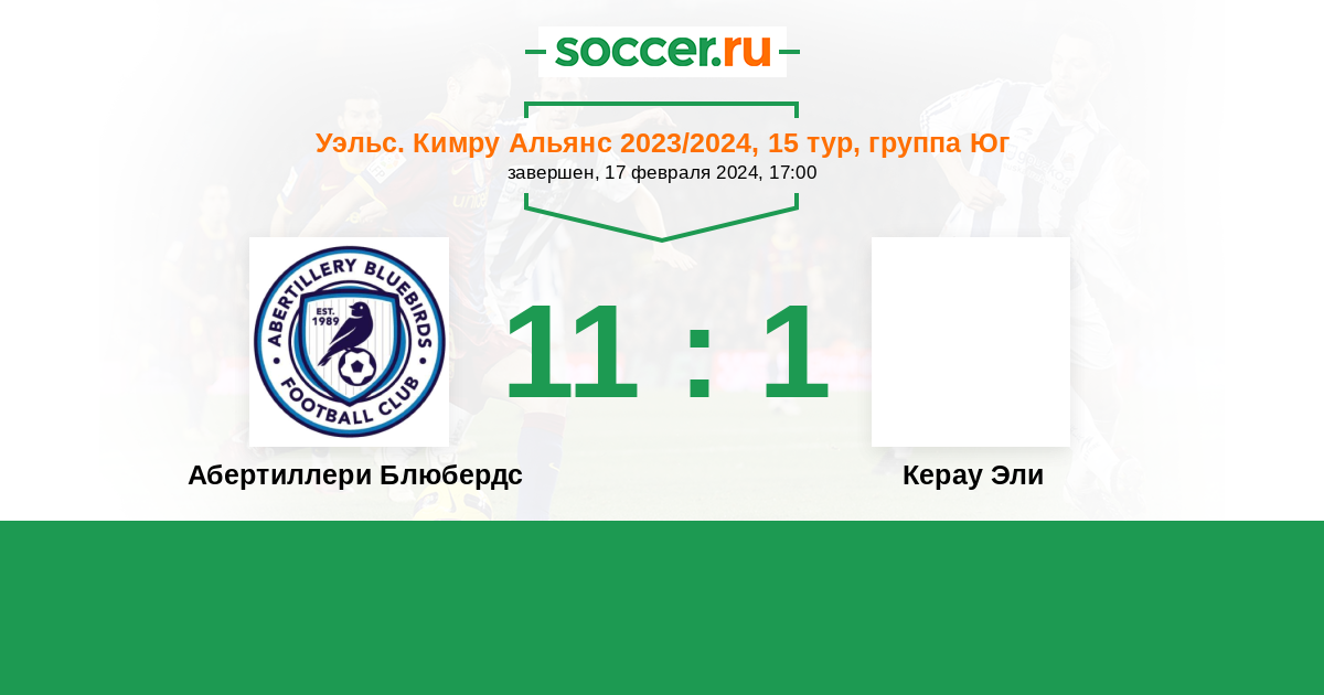 | Абертиллери Блюбердс | 4:11 | 0:0 | 4:11 |