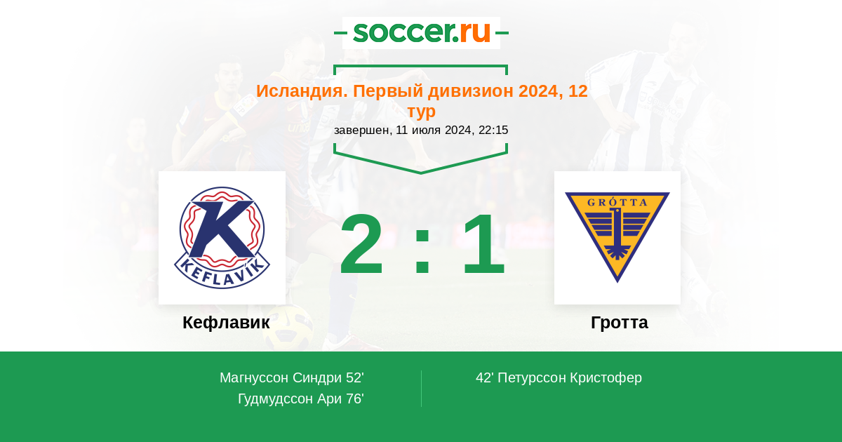 | Кефлавик | 4:7 | 1:2 | 3:5 |