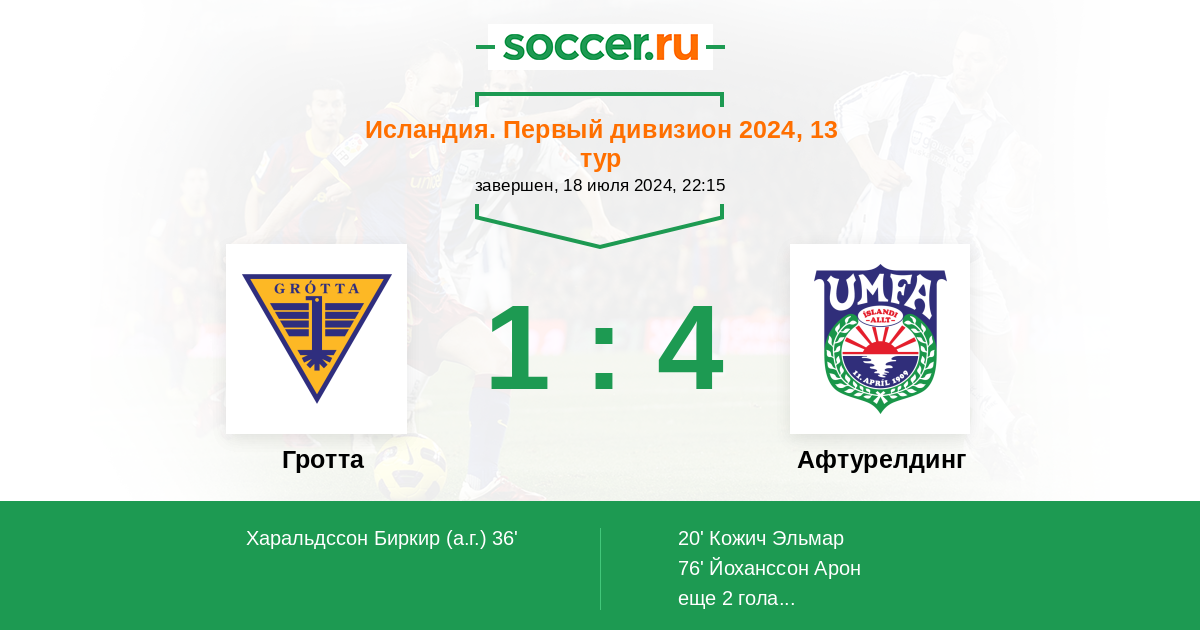 | Афтурелдинг | 42:46 | 20:19 | 22:27 |
