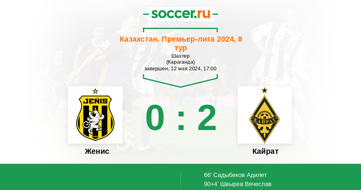 | Кайрат | 6:3 | 4:2 | 2:1 |