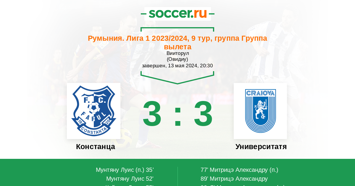 | Фарул | Университатя Крайова | |