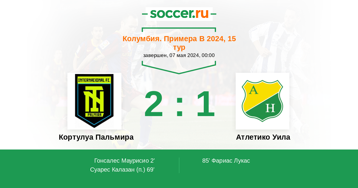 | Колумбия. Примера B | 5 | 1 | 4 | 0 |