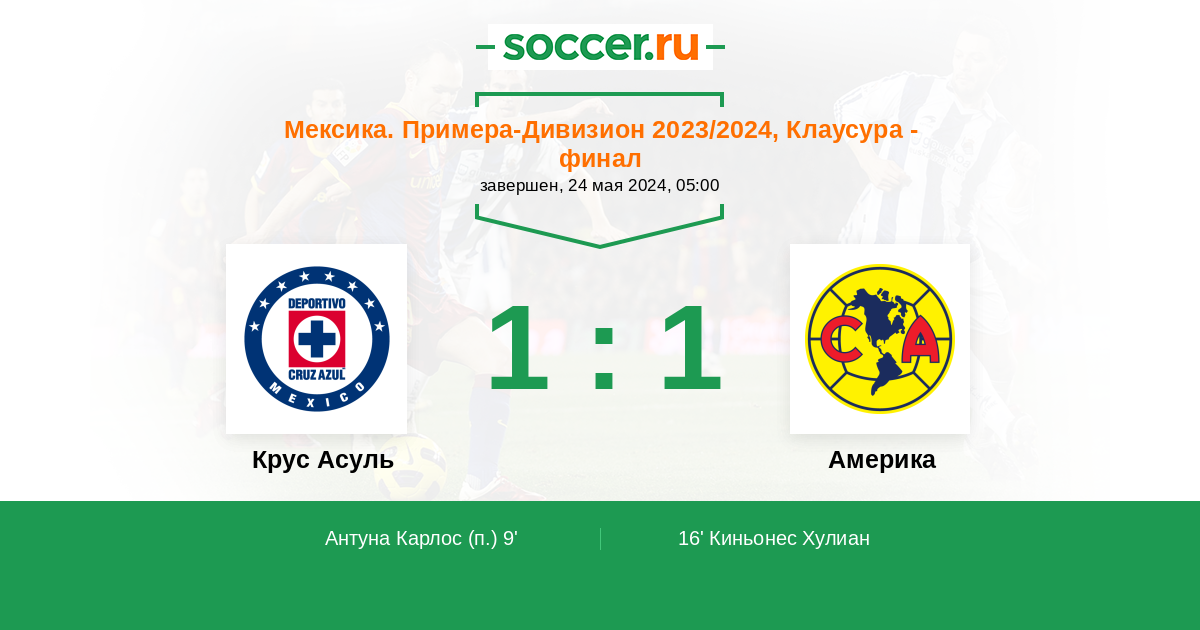 | Крус Асуль | 72:95 | 52:51 | 20:44 |