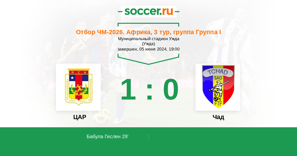 | ЦАР | 3:2 | 0:0 | 3:2 |