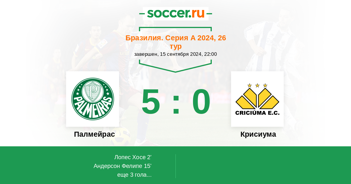 | Палмейрас | 5:2 | 1:0 | 4:2 |
