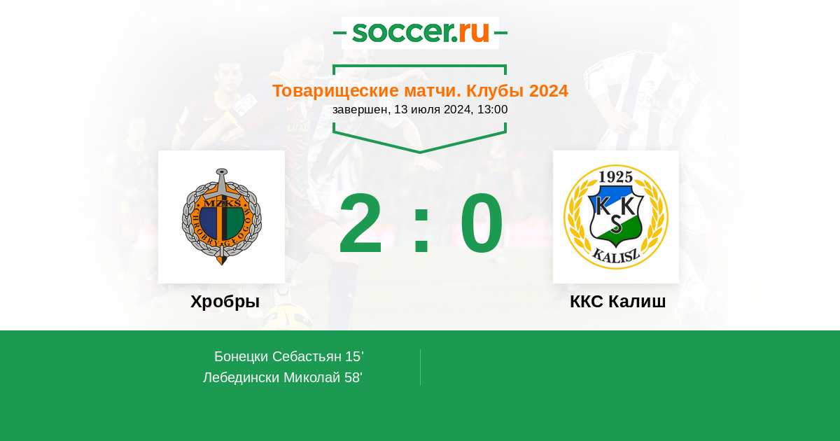 | ККС Калиш | 4:2 | 0:0 | 4:2 |