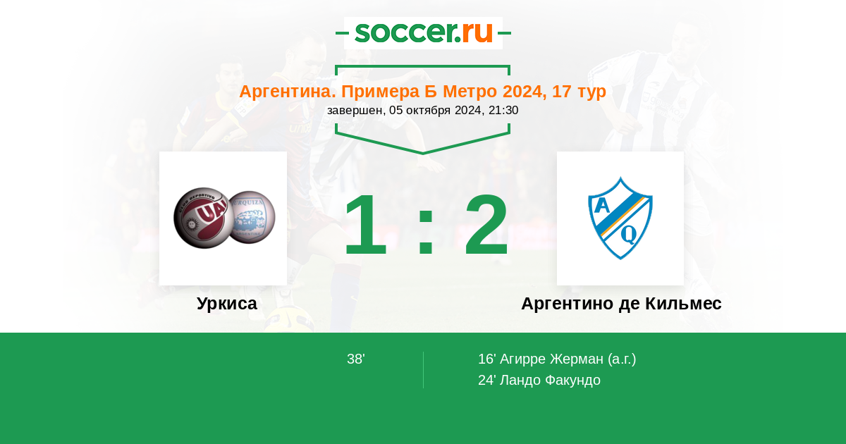 | Аргентино де Кильмес | 37:26 | 15:12 | 22:14 |