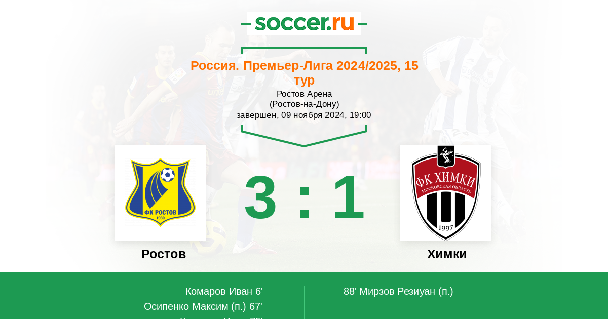 | Ростов | Химки | |