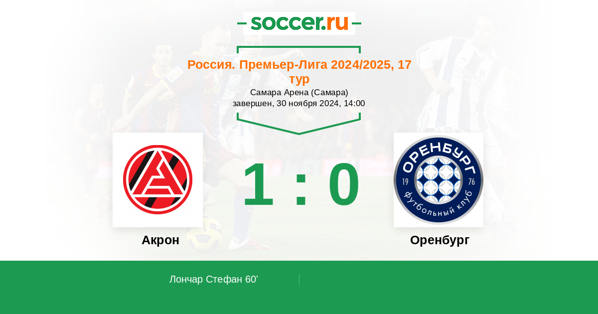 | Акрон | Оренбург | |