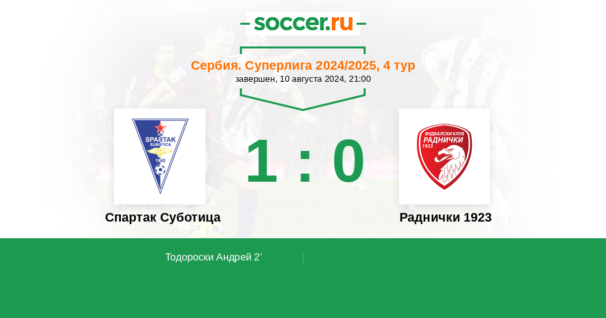 | Спартак Суботица | 14:24 | 7:9 | 7:15 |