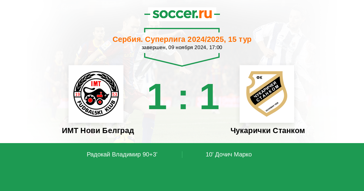 ИМТ Нови Белград 1:3 Чукарички Станком