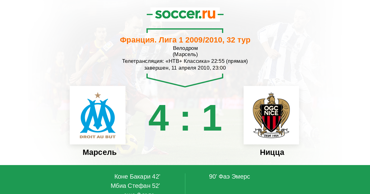 Марсель, Велодром Телетрансляция: "НТВ+ Классика" 22:55 (прямая)