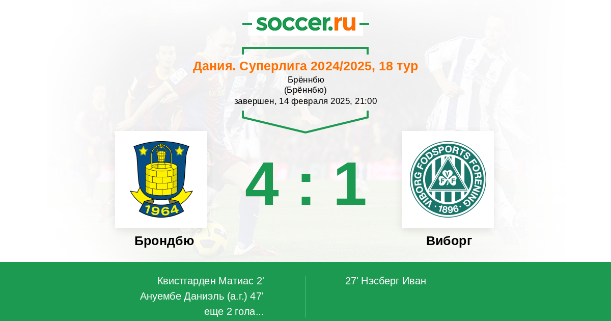 | Брондбю | 85:58 | 44:25 | 41:33 |