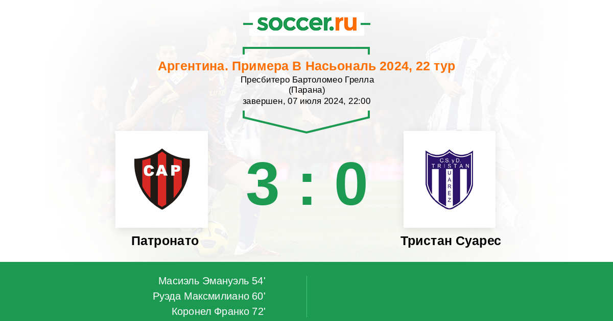 | Патронато | 3:2 | 2:0 | 1:2 |