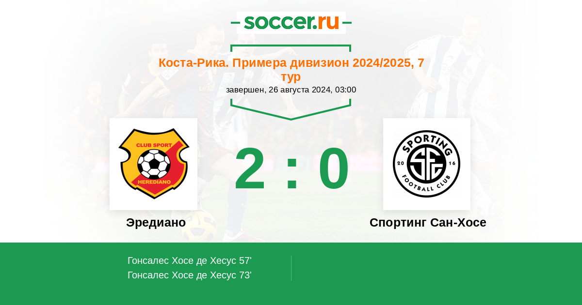 | Эредиано | 42:16 | 21:7 | 21:9 |