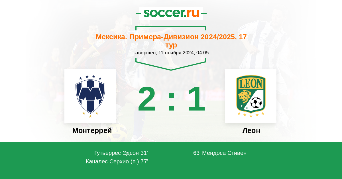 | Монтеррей | 50:29 | 30:13 | 20:16 |