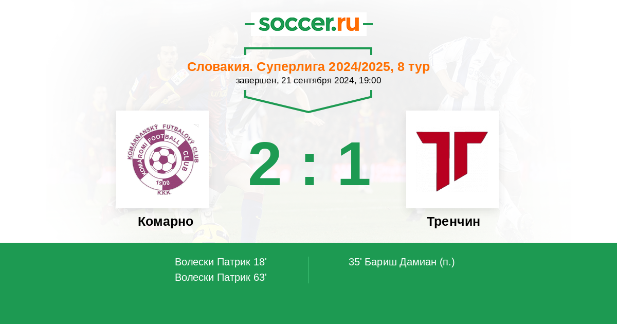 | Тренчин | 4:2 | 2:1 | 2:1 |