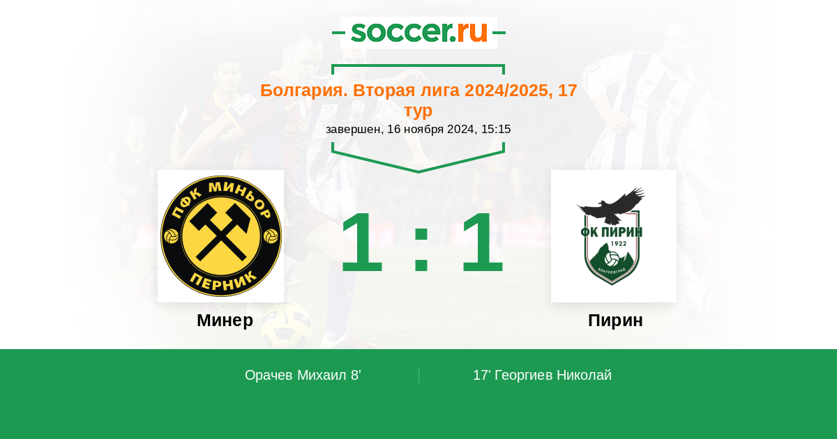 | Пирин | 7:3 | 6:2 | 1:1 |