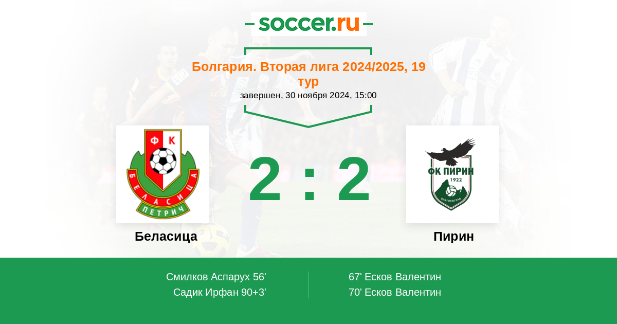 | Болгария. Вторая лига | 2 | 1 | 1 | 0 |