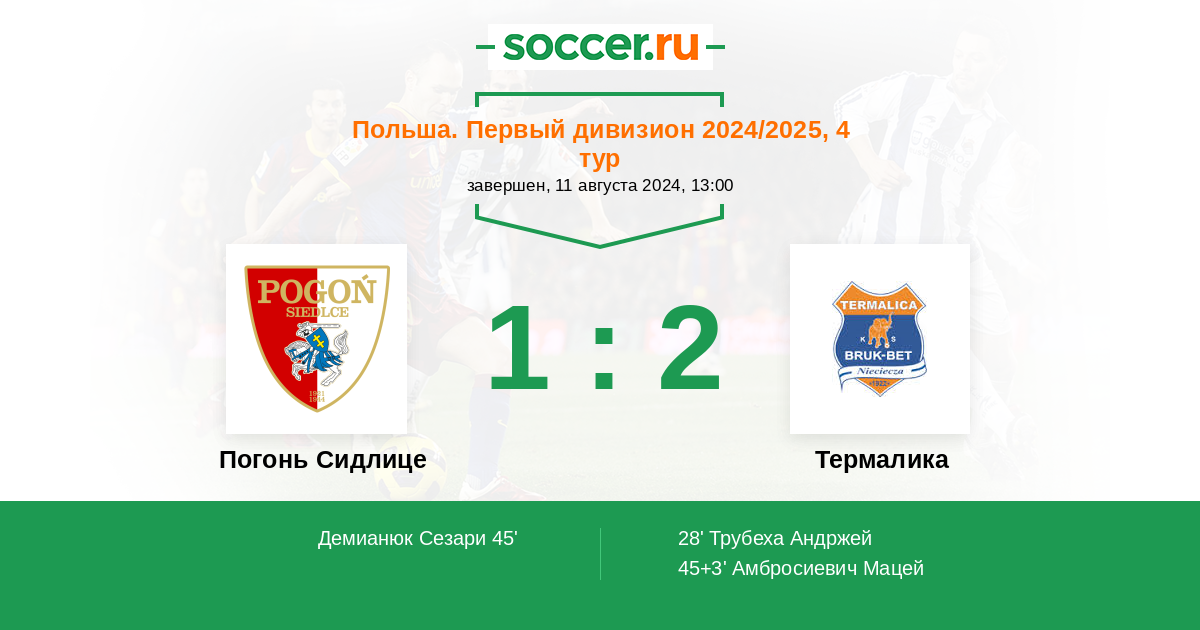 | Погонь Сидлице | 1:1 | 0:0 | 1:1 |