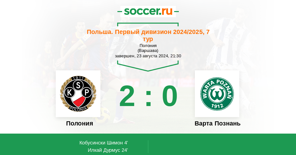 | Варта Познань | 1:2 | 1:2 | 0:0 |