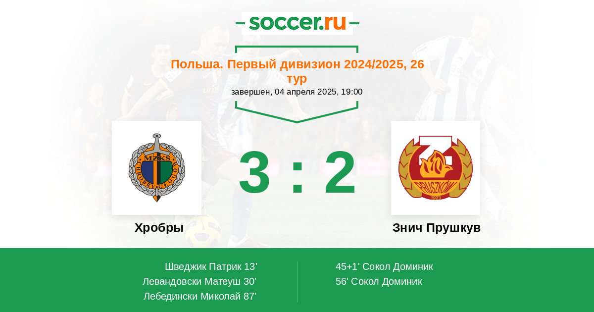 | Знич Прушкув | 3:7 | 3:6 | 0:1 |