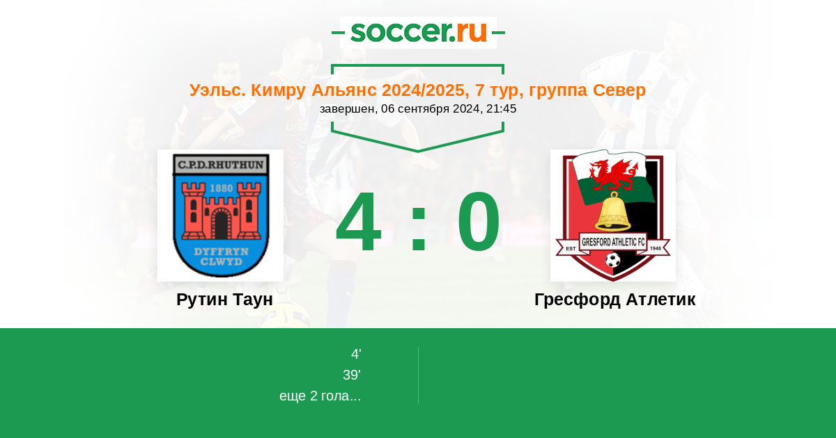 | Гресфорд Атлетик | 43:34 | 23:15 | 20:19 |