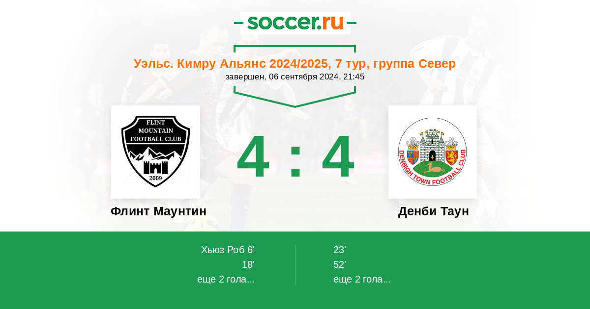 | Флинт Маунтин | 4:5 | 1:0 | 3:5 |