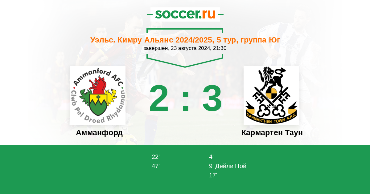 | Кармартен Таун | 22:14 | 9:8 | 13:6 |