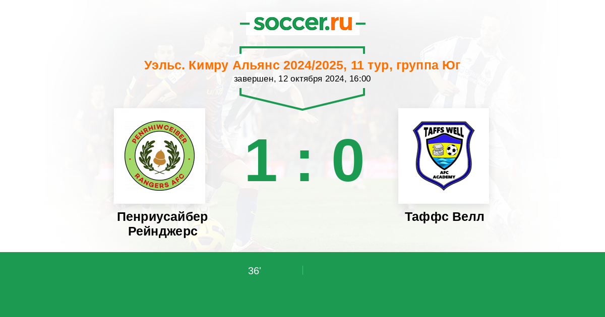 | Пенриусайбер Рейнджерс | 2:1 | 0:0 | 2:1 |