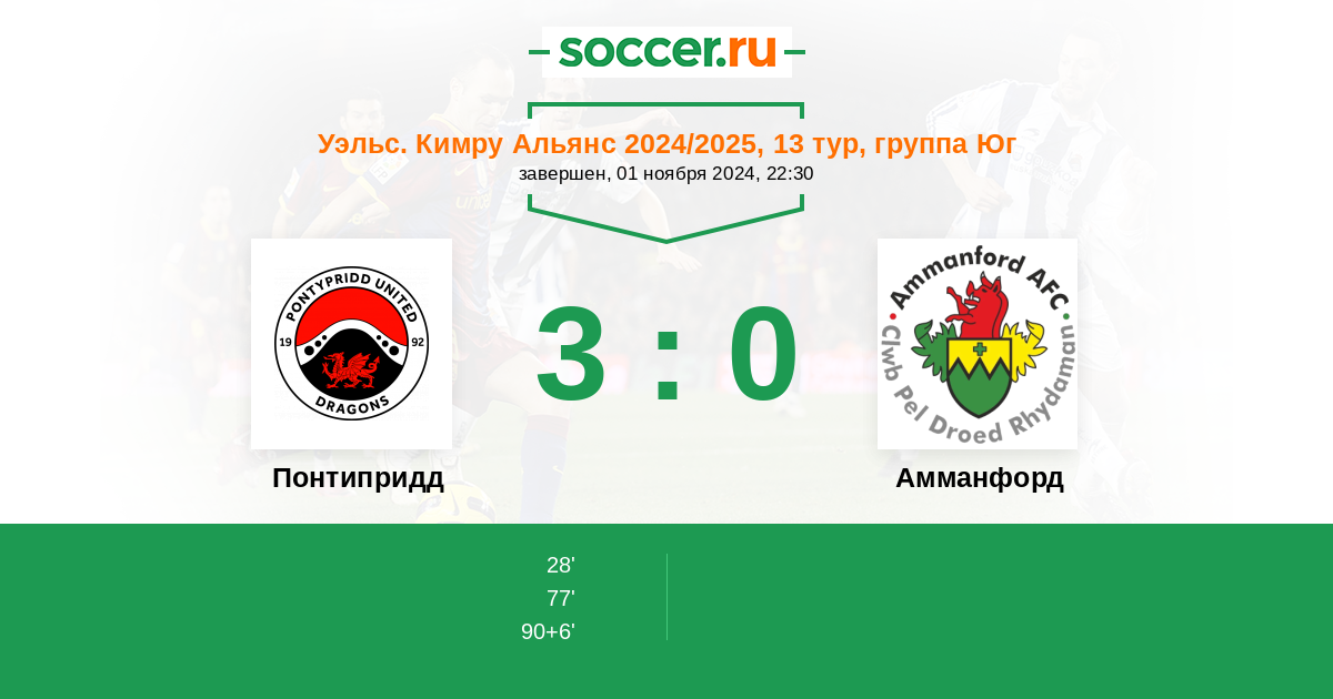 | Уэльс. Кимру Альянс | 9 | 5 | 2 | 2 |
