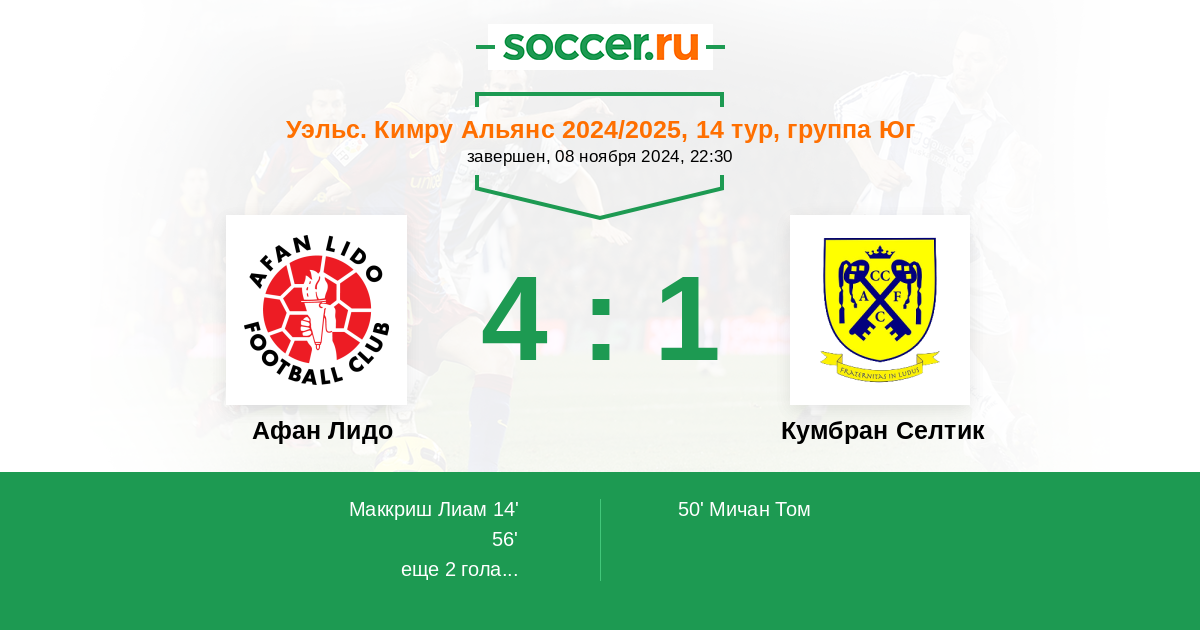 | Кумбран Селтик | 21:43 | 16:20 | 5:23 |