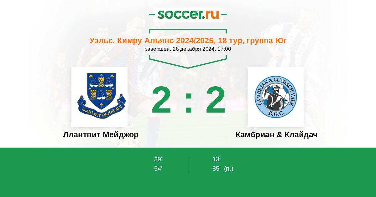 | Ллантвит Мейджор | Камбриан & Клайдач | |