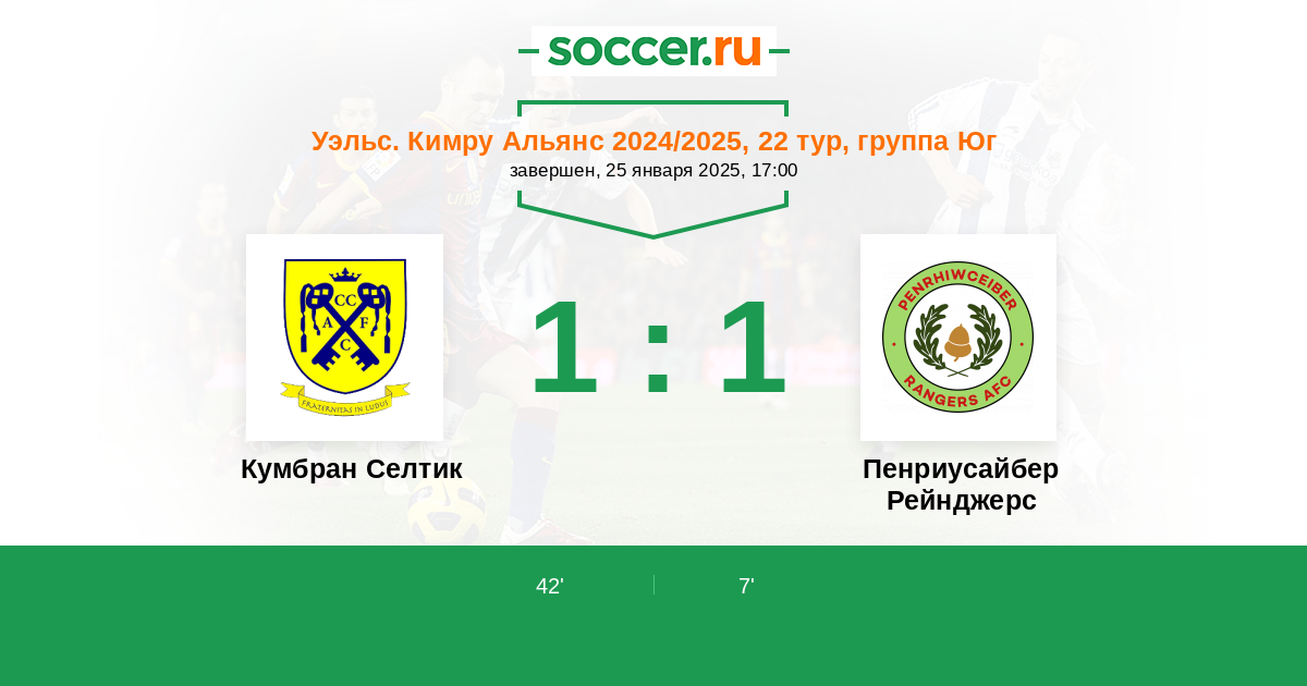 | Кумбран Селтик | 1:0 | 0:0 | 1:0 |