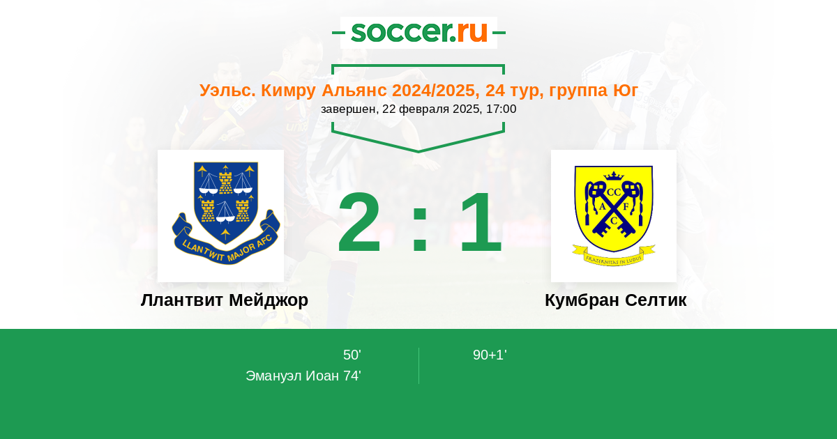 | Ллантвит Мейджор | Кумбран Селтик | |