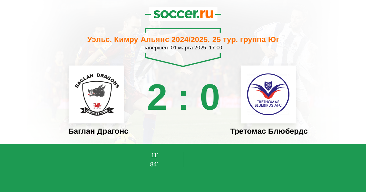 | Баглан Драгонс | 2:2 | 0:0 | 2:2 |