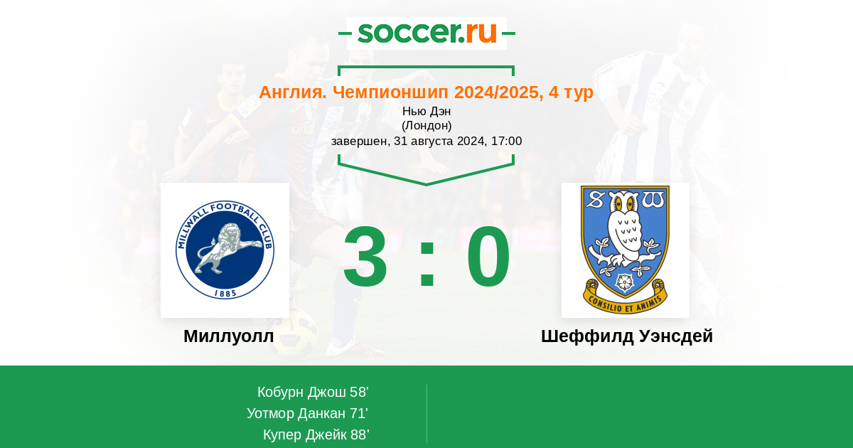 | Миллуолл | Шеффилд Уэнсдей | |