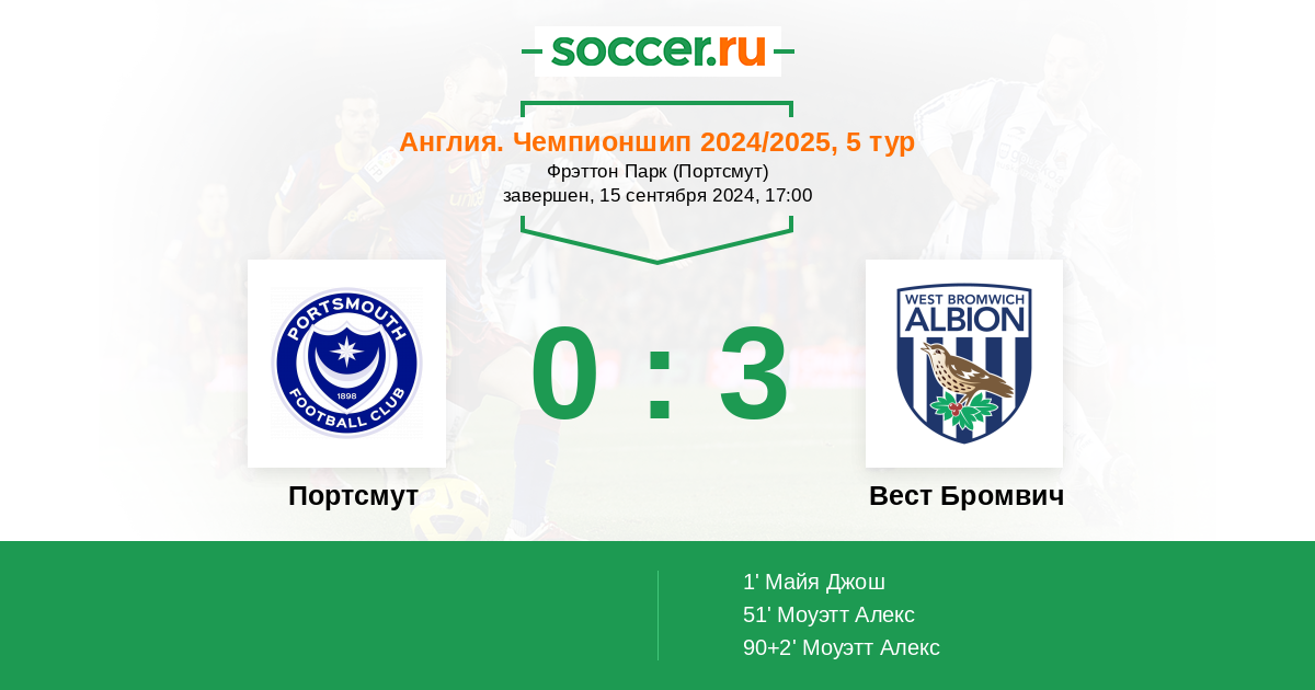 | Портсмут | Вест Бромвич | |